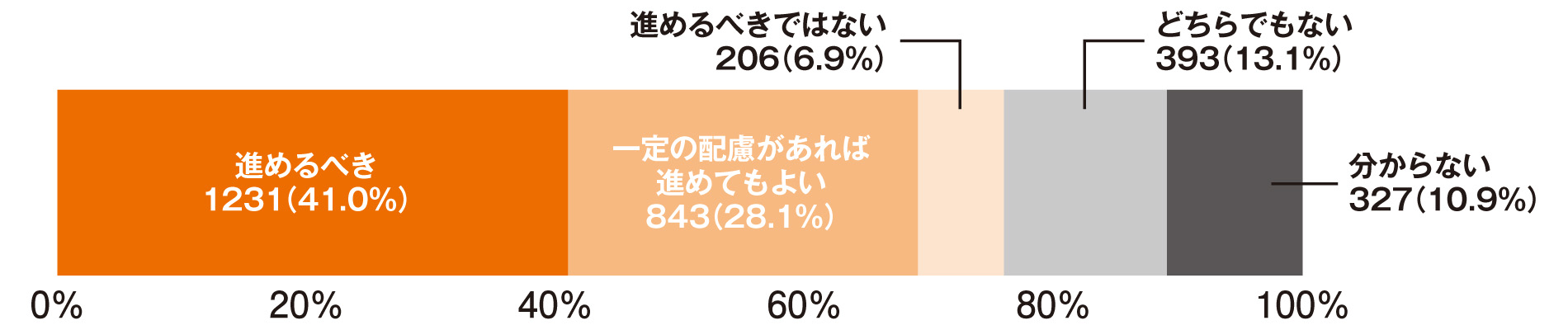 Q.オフィスや飲食店等の施設における原則屋内禁煙が進むにつれ、施設周辺の路上喫煙 が増加する懸念があります。屋外に分煙所の設置を進めることについて、あなたはどう思いますか