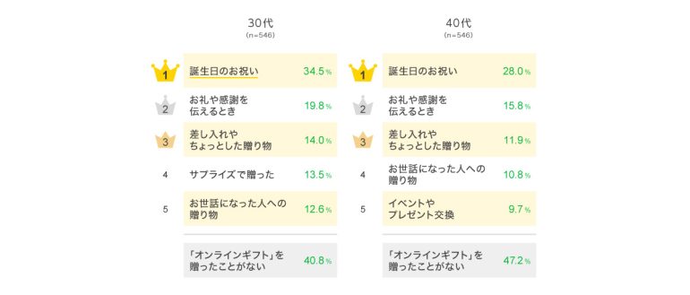 まず、「オンラインギフト(eギフト)」を贈ったことがあるか、また贈ったことがある人はどんな時に使ったかを聞いた。