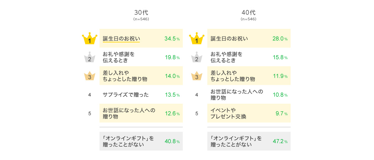 まず、「オンラインギフト(eギフト)」を贈ったことがあるか、また贈ったことがある人はどんな時に使ったかを聞いた。