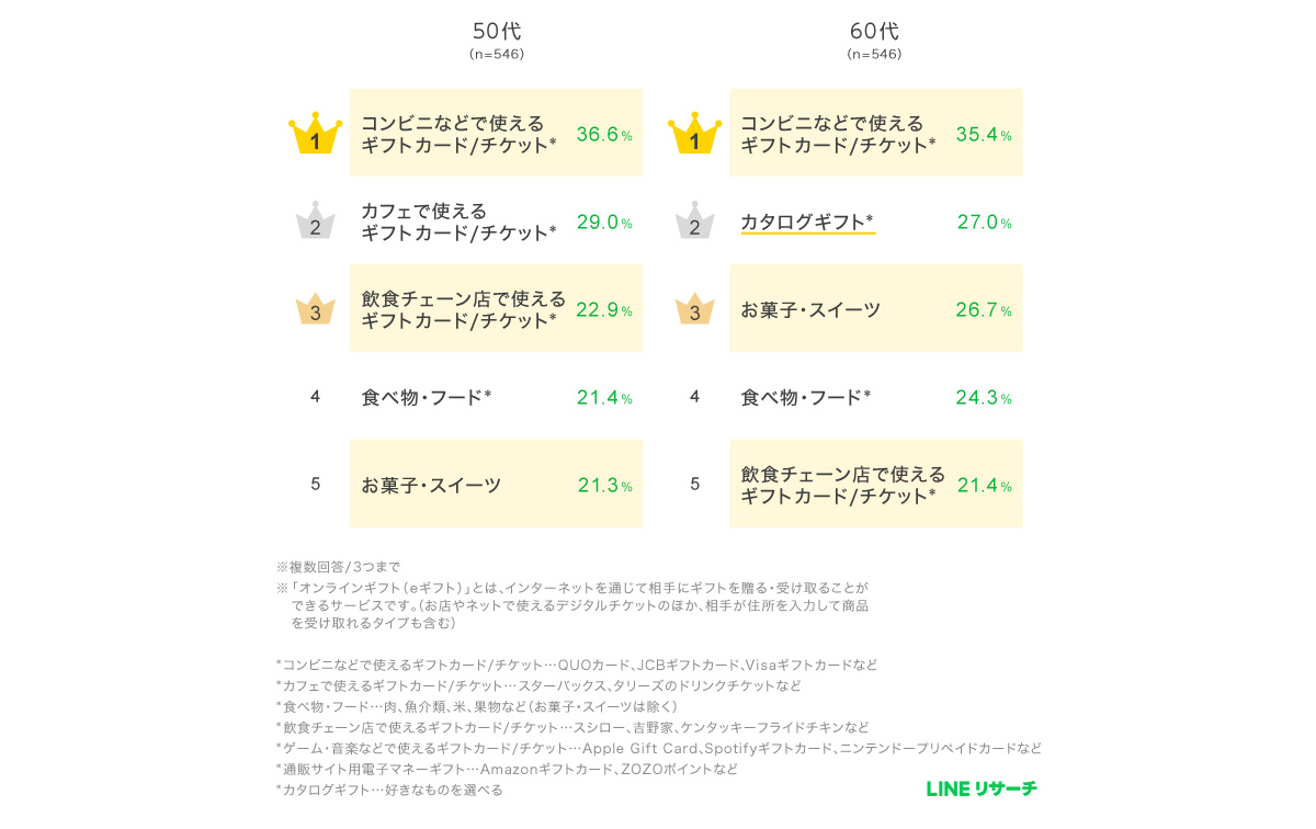 スマートフォン専用のリサーチプラットフォーム「LINEリサーチ」はこのほど、日本全国の15歳~69歳の男女3152名を対象に、オンラインギフト(eギフト)を贈った経験や、もらってうれしいオンラインギフト(eギフト)に関する調査を実施し、その結果を発表した。