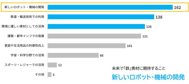 鉄素材に関して未来の期待1位は「新しいロボット・機械の開発」