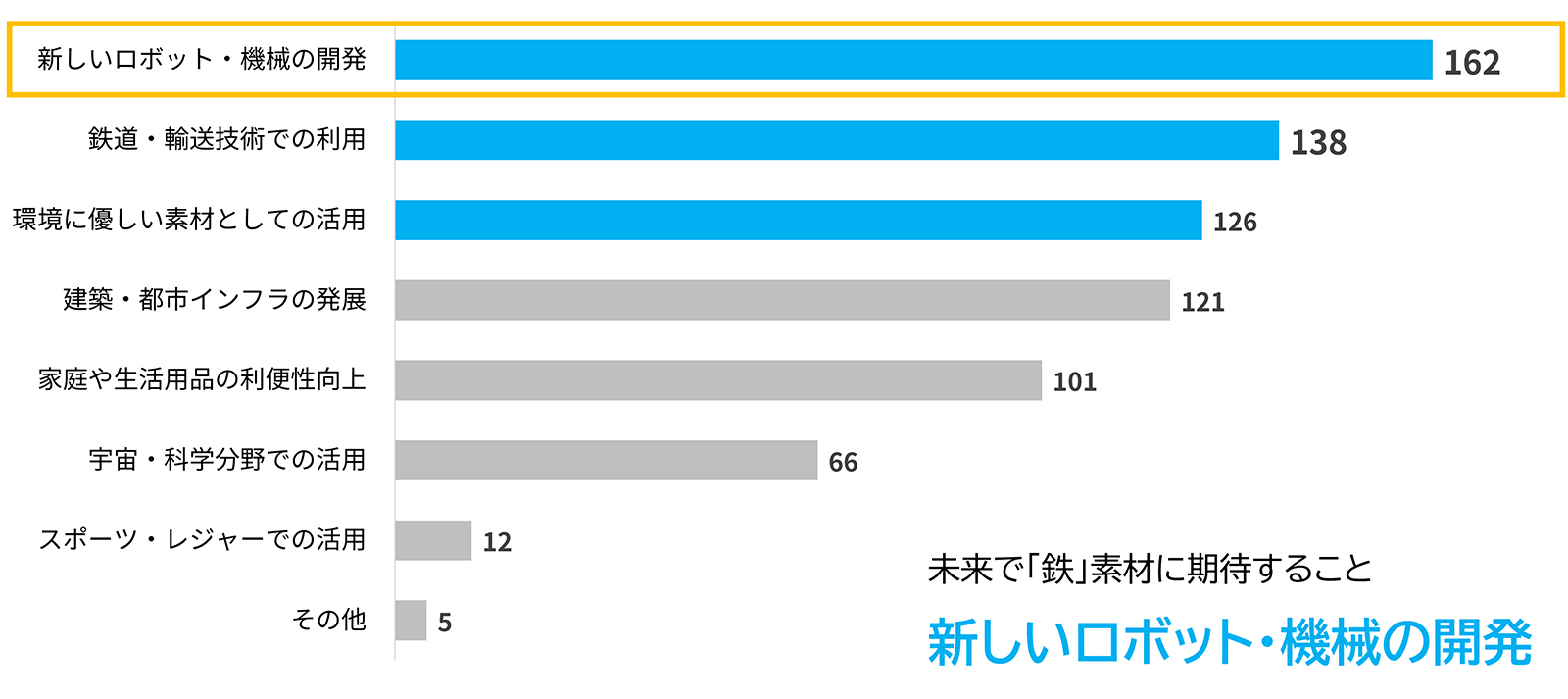 鉄素材に関して未来の期待1位は「新しいロボット・機械の開発」
