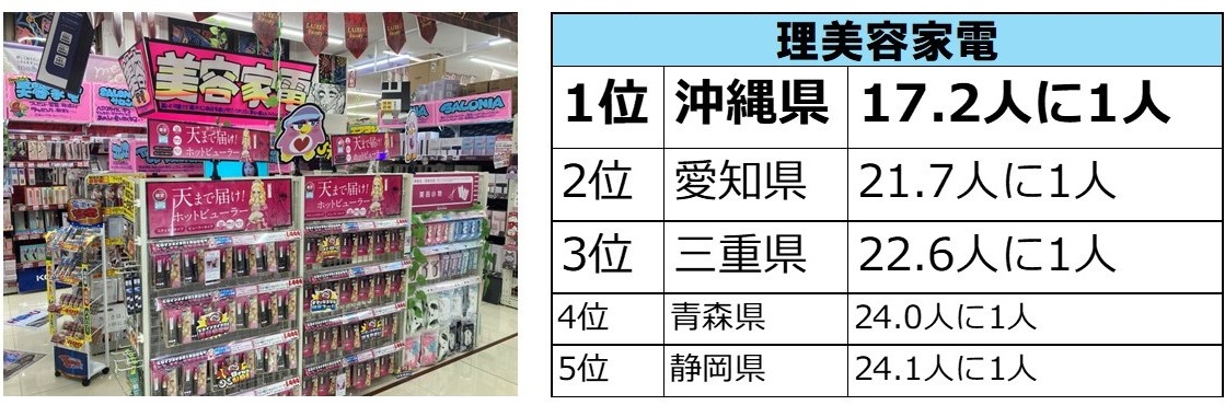 ランキングは1位沖縄県、2位愛知県、3位三重県いう結果に。1位となった沖縄県では、この1年間で県民の17人に1人は理美容家電を買ったことがある計算となった。