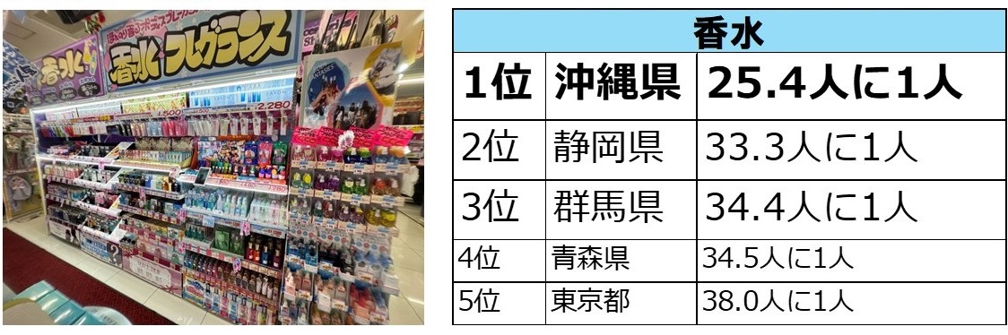 ランキングでは人口規模も地域もバラバラな5都県がランクイン。1位となった沖縄県では、この1年間で県民の25人に1人が香水を買ったことがある計算となった。