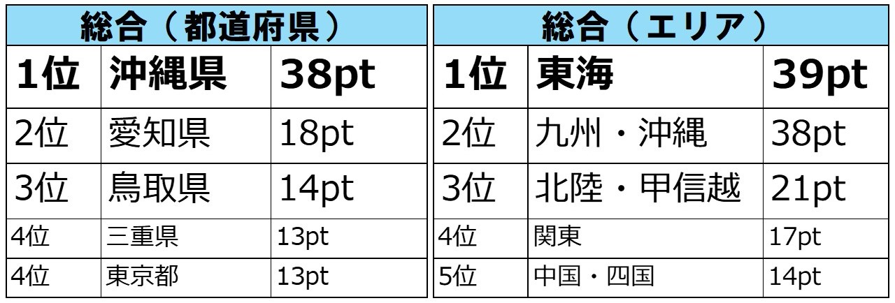 また、地域別でみると、東海エリア(静岡県、愛知県、岐阜県、三重県)が1位を獲得。以下、九州・沖縄、北陸・甲信越と続いた。