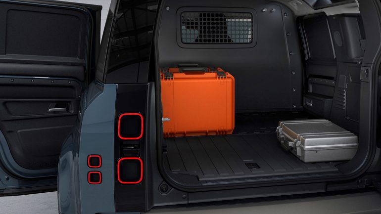 「ディフェンダー110」のボディに、3.0リッター直列6気筒INGENIUMターボチャージドディーゼルエンジン(MHEV)を搭載し、2人乗り仕様にして、乗員スペースと荷室を仕切る固定式フルハイトパーティションを装備し、最大2,059リットルのラゲッジスペースを確保している。