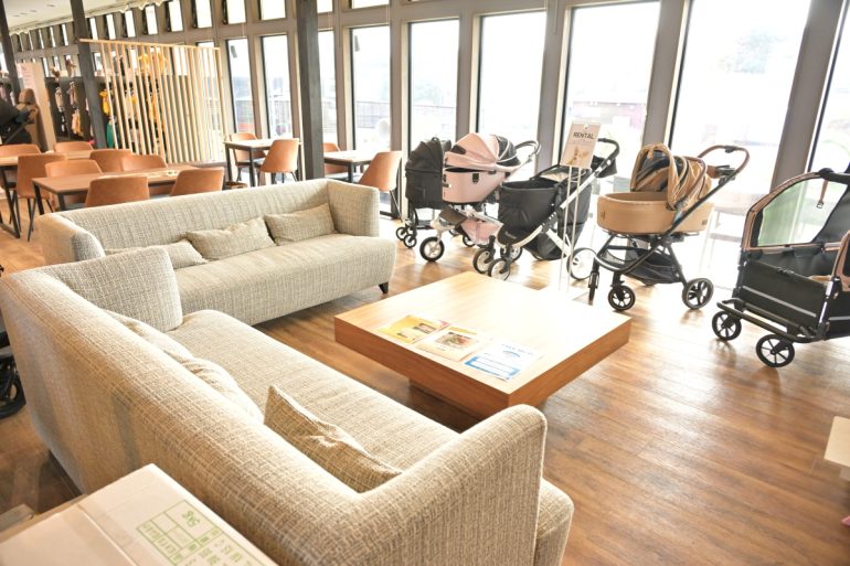 ランチを終えたあと、午後3時のチェックインまで時間があっても、ここグランデプライベートドッグリゾート常陸では時間を持て余すことはありません。インフォメーションセンター外の大型ドッグラン・イベント広場(日帰り利用も可)で愛犬をリフレッシュさせてもいいし(ドッグランに面したテラス席でランチをいただくことも可能)、ハイブランドが揃う愛犬用セレクトショップでショッピングしたり、その場で購入することもできるペットカートをレンタルして試用してみたり、ドリンクバーの飲み物をいただきソファやテラスでまったりしたり、マルシェコーナーで地元野菜(この日はサツマイモ、ジャガイモ、ピーマン)をBBQ、焚火用に無料でいただいたりすることまでできるのですから。そうそう、愛犬用のグッズ、おやつを忘れても、ここで手に入れることができるから安心です!?(アーモンド談)