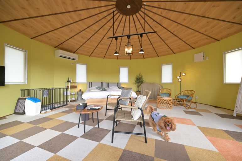 ここで、新型デリカミニで訪れたグランデプライベートドッグリゾート常陸について説明すれば、関東エリア最大級の複合型ドッグリゾートとして2024年4月27日、茨城県小美玉市にグランドオープン。出張フレンチ料理もいただける広さ160㎡!!のプレミアムヴィラ2棟(1棟は会員専用)、広さ40㎡のコテージ、ドーム、コクーン各3棟の合計12棟が用意されています。すごいのは、全棟にプライベートドッグラン、黒湯の客室温泉、そしてプール(人間用、愛犬用)が用意されていること。