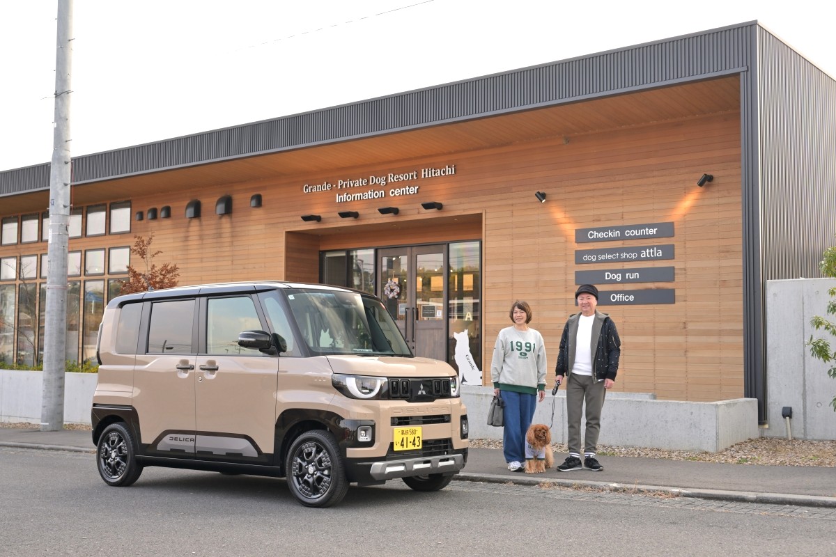 ここで“気軽なアウトドア”に”ちょっぴりプレミアム”というキーワードを加えたのは、今回、乗って行った新型デリカミニが、2025年10月28日時点のグレード別注文構成比でもっとも多い67%を占める、ターボモデルの「T Premium DELIMARU Package」であり、目的地が全室に愛犬を同伴できる、プレミアムなヴィラ、コテージ、ドーム型テントを配した関東最大級のドッグリゾート、グランデプライベートドッグリゾート常陸だからです。