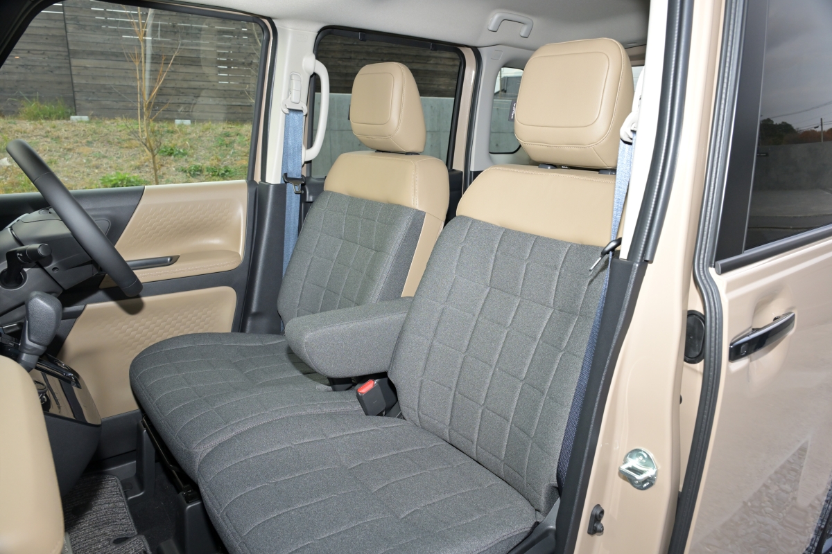 パッケージ(前後席空間、ラゲッジスペース)については先代から大きな変更はないものの、室内空間は依然、スーパーハイトワゴンクラスのトップレベルの広さ、機能性、高品質感を備えています。とくに、角度を立てたフロントウインドー(Aピラー)によって前席周りの広々感はさらに高まり、12.3インチの大型ディスプレーに軽自動車初のGoogle搭載ナビゲーションを採用したことも大きな特徴。実際、前席の広々感はさらに高まり、全方位の視界の良さもあって、走り始める前から爽快なドライブを予感させてくれるのです。