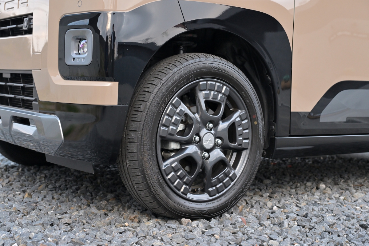 「2025年度グッドデザイン賞ベスト100」にも選ばれた新型デリカミニのエクステリアデザインは、誰がどう見ても、一目でデリカミニと分かる、顔の「デリ丸。」らしさはそのままに、ヘッドライトとターンランプを大型化。よりキリリとした「デリ丸。」の丸目がさらに強調された「やんちゃかわいい」親しみあるフロントフェイスに進化。ワイド化した前後スキッドプレートとプレスラインが強調されたボディサイドパネルによってタフなイメージを増幅し、さらにリヤコンビランプやアルミホイールなど、随所にちりばめられたブロックモチーフがギア感を演出しています。