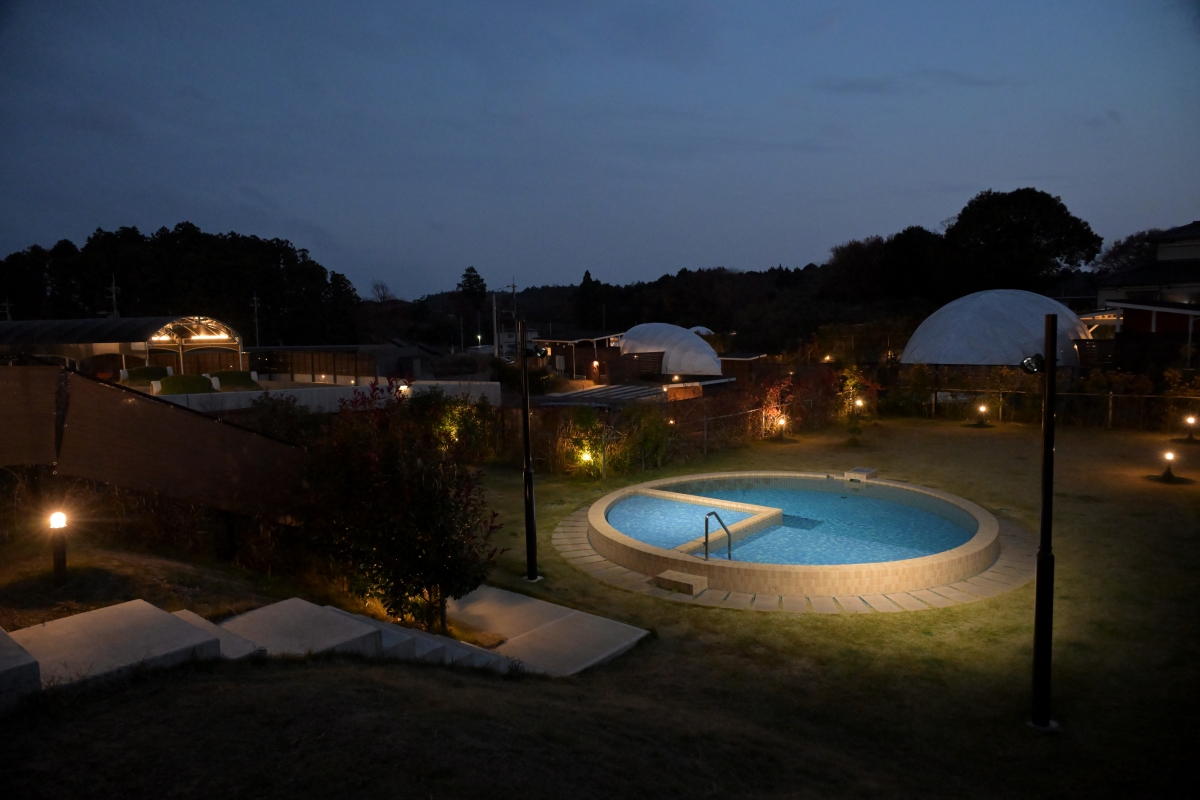 ここで、新型デリカミニで訪れたグランデプライベートドッグリゾート常陸について説明すれば、関東エリア最大級の複合型ドッグリゾートとして2024年4月27日、茨城県小美玉市にグランドオープン。出張フレンチ料理もいただける広さ160㎡!!のプレミアムヴィラ2棟(1棟は会員専用)、広さ40㎡のコテージ、ドーム、コクーン各3棟の合計12棟が用意されています。すごいのは、全棟にプライベートドッグラン、黒湯の客室温泉、そしてプール(人間用、愛犬用)が用意されていること。