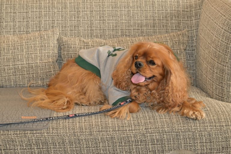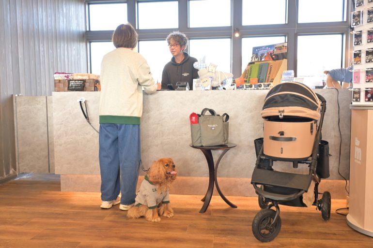 朝食後は、アーモンドのお散歩がてら、インフォメーションセンターまで歩き、セルフカフェでコーヒータイム。そこで、満を持して、わが家の4代目自称自動車評論犬!?のキャバリアのアーモンドが、新型デリカミニの犬目線によるドッグフレンドリーポイントをわんわん説明してくれました。