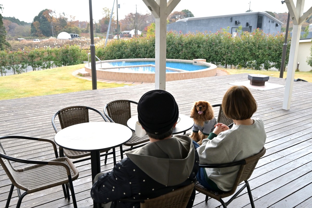 新型デリカミニの快適で安全・安心なドライブで、霞ヶ浦湖畔の天王崎公園に立ち寄り、早めにグランデプライベートドッグリゾート常陸に到着。インフォメーションセンター内のラウンジでランチをいただき、新型デリカミニで行く気軽でプレミアムなアウトドアライフをスタートさせたのでした。