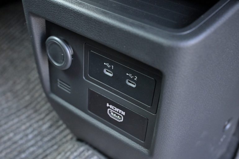 もちろん、スマートホンの充電もぬかりなし。スマートホンを置くのに適したインパネロワートレイのすぐ下に充電用USB-Cポートがふたつ用意され、2台同時の充電も可能です(後席にもUSB-Cポートあり。T/Gグレードを除く)。