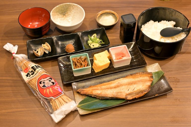 さて、グランデプライベートドッグリゾート常陸滞在2日目の朝は、黒湯温泉の朝風呂につかり、指定した時間にスタッフがコテージまで出来立ての朝食を運んできてくれました。今朝のメニューは茨城県産コシヒカリのごはん、味噌汁、焼き魚、茨城名物のわら納豆、季節の小鉢3種というもの。朝から幸せ気分でいただくことができました。