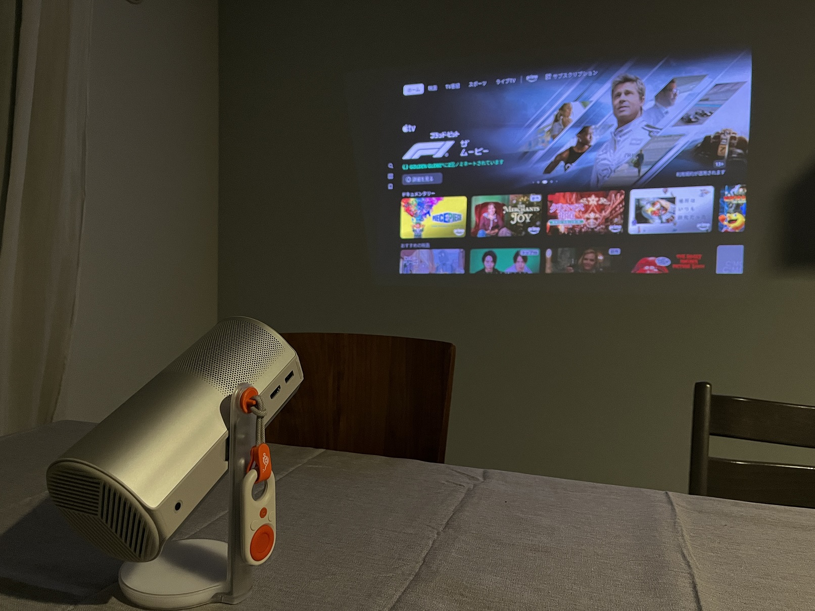小型モデルにありがちな画質の妥協が少なく、夜間だけでなく日中でもカーテンを閉めた薄暗い環境であれば十分に映像鑑賞できる明るさと解像度である。