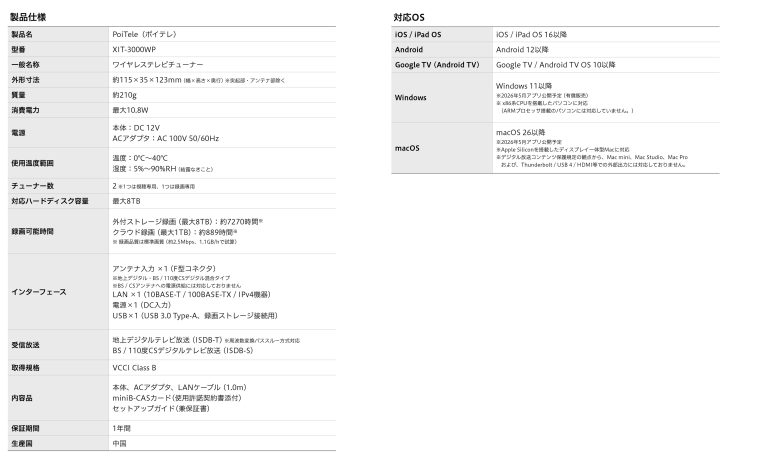なお、「PoiTele」本体は、幅約11.5cmのコンパクトなボディで、場所を取らずに設置可能。自宅のアンテナとワイヤレスルーターに接続することで、専用アプリを通じて、スマホやタブレットでテレビ番組を楽しむことができる。また、Android TV OSにも対応しており、Android TV OS搭載のスマートテレビでも視聴することが可能だ。