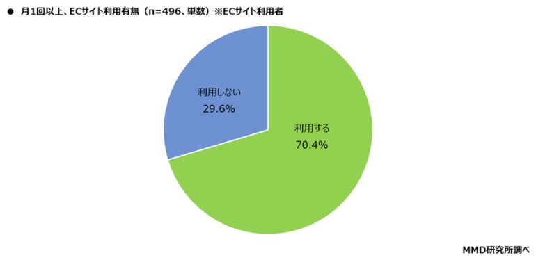 ECサイト利用者496人を対象に、月1回以上ECサイトを利用するか聞いたところ、「利用する」は70.4%、「利用しない」は29.6%となった。