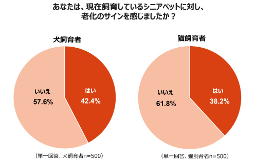 ペットに老化を感じた飼育者は約4割で、老化のサインの内容は犬・猫で異なる