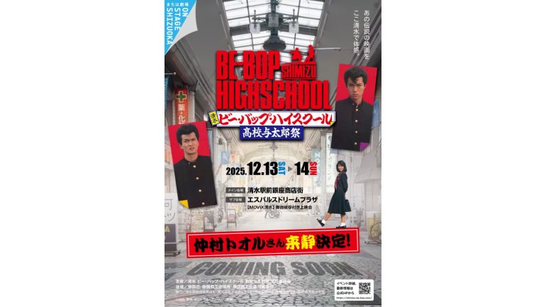 というわけで、映画『ビー・バップ・ハイスクール』(1985年)の劇場公開40周年という記念すべき2025年に合わせ、2025年12月13日~14日の2日間にわたり、多くのシーンで撮影ロケ地となった静岡県静岡市清水区(旧静岡県清水市)で『ビー・バップ・ハイスクール』シリーズにちなんだイベント『清水 ビー・バップ・ハイスクール 高校与太郎祭』が開催された。