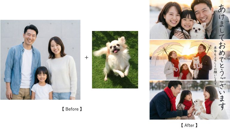 「#Gemini で年賀状」は、Googleが提供するAI「Gemini」の最新画像生成モデルである「Nano Banana Pro」を活用したAI 年賀状作成ツール。