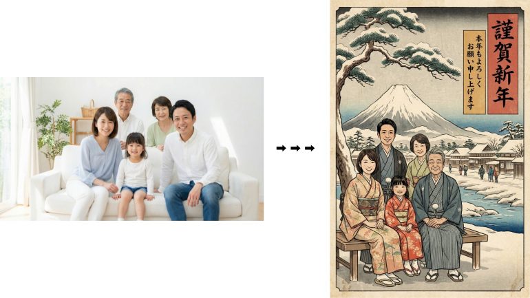 日本郵便は「年賀状はこんなに簡単に、楽しく作れる!」をコンセプトに掲げ、Googleが提供するAI「Gemini」の最新画像生成モデル「Nano Banana Pro」を活用した、手軽でユニークな AI 年賀状作成ツール「#Geminiで年賀状」の無料提供を開始した。生成した年賀画像は、実際に年賀状として送ることができるので、ぜひ活用したい。