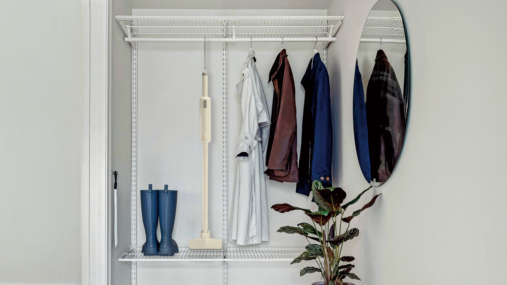 さらに、ストラップ付きで吊り下げ収納が可能なのも魅力で、スリムでコンパクトな本体設計のため、クローゼット内や家具のすき間など限られたスペースでもすっきりと収まる。