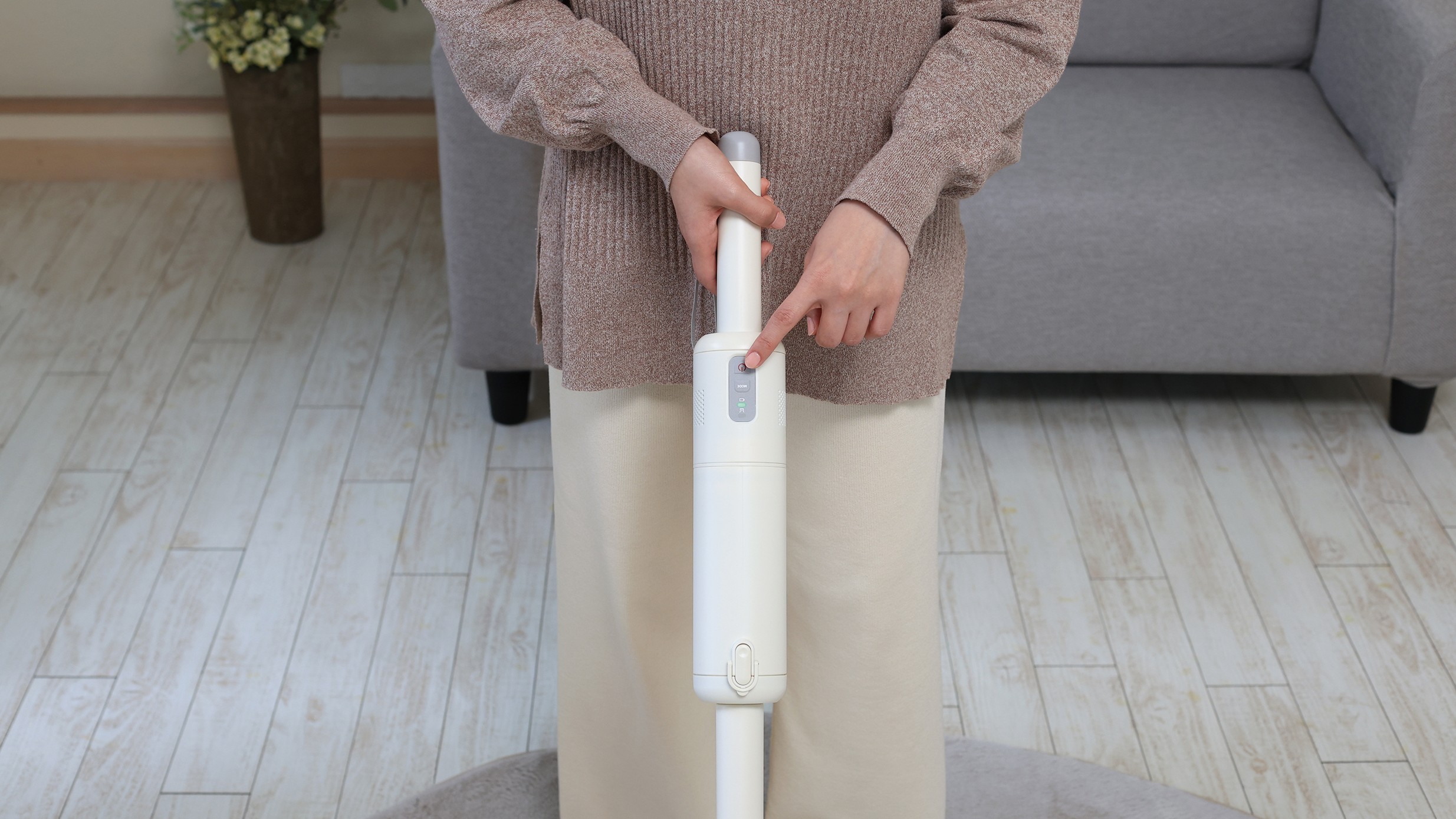 このほか、吸引力は「標準/強」の2段階切り替えに対応しており、床・ラグ・家具周りなど、使用シーンに合わせて調整が可能だ。