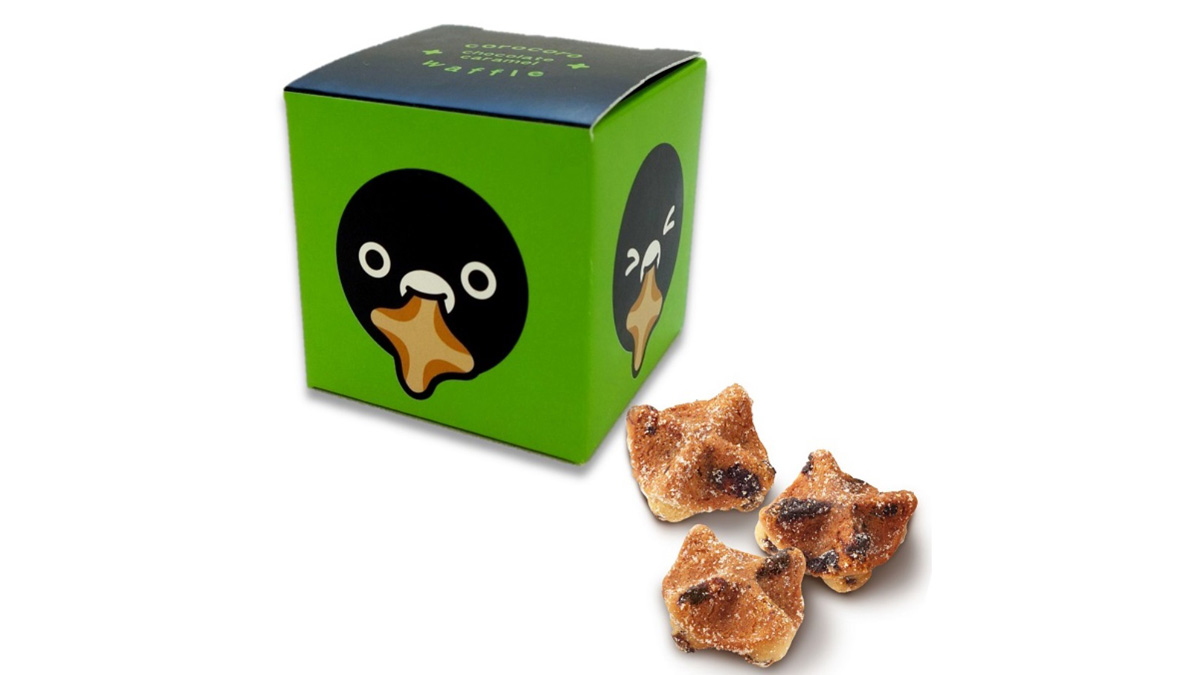 Suicaのペンギンが描かれたキューブ型パッケージは愛らしく、開ける瞬間から楽しい気分に。食べ切りサイズで持ち運びやすいので、プチギフトにも喜ばれる一品だ。