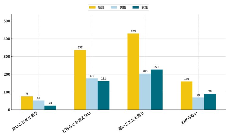 一方、「どちらとも言えない」が33.7%、「良い」と評価する人は7.5%にとどまり、「わからない」が15.9%という結果となった。全体として、否定的または判断を保留する意見が大半を占めていることがわかる。