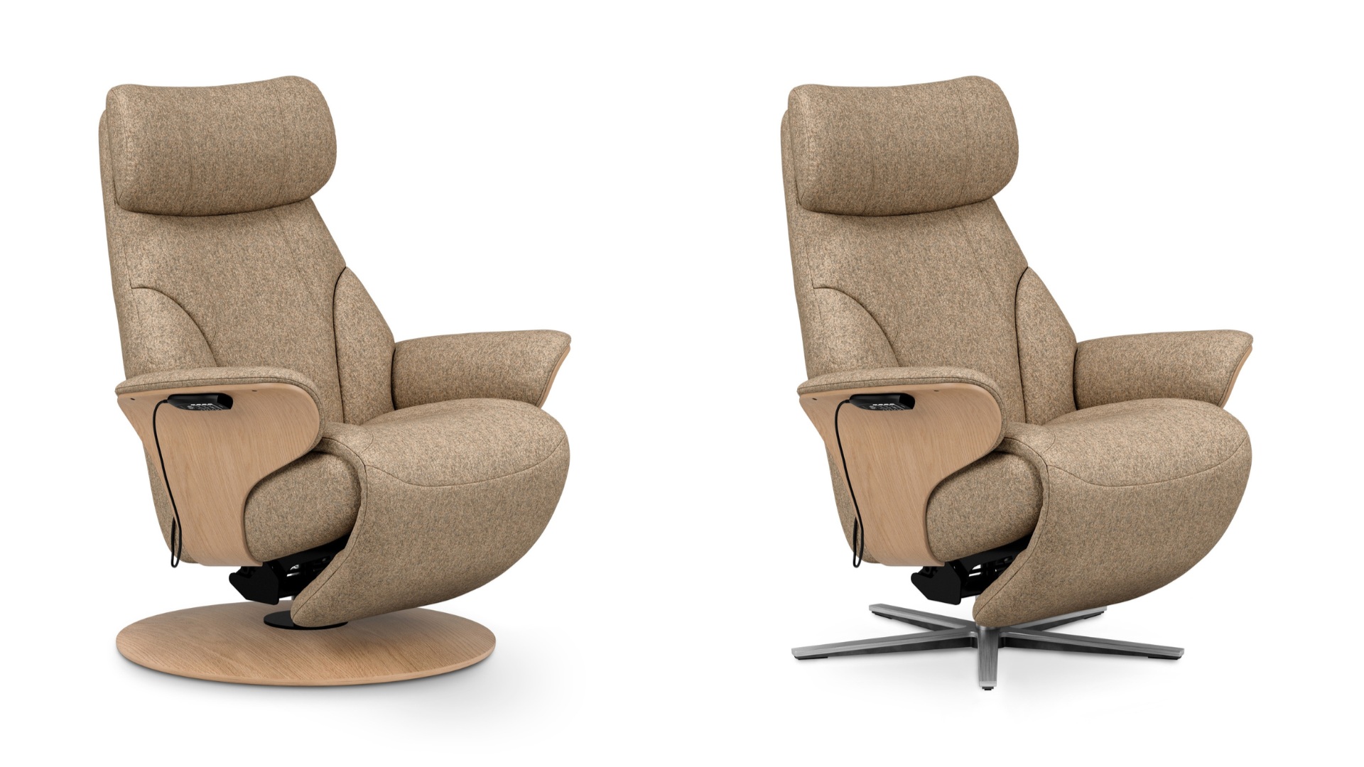 また、上質なインテリアになじむ、北欧らしいミニマルで調和的なフォルムも魅力。さらに、カスタマイズ性が高いのも特長で、高級レザー/ファブリックなど豊富な張地バリエーションを用意するほか、ベースデザインも丸いディスクベースと星形の金属製シリウスベースの2種類から選択することができる。