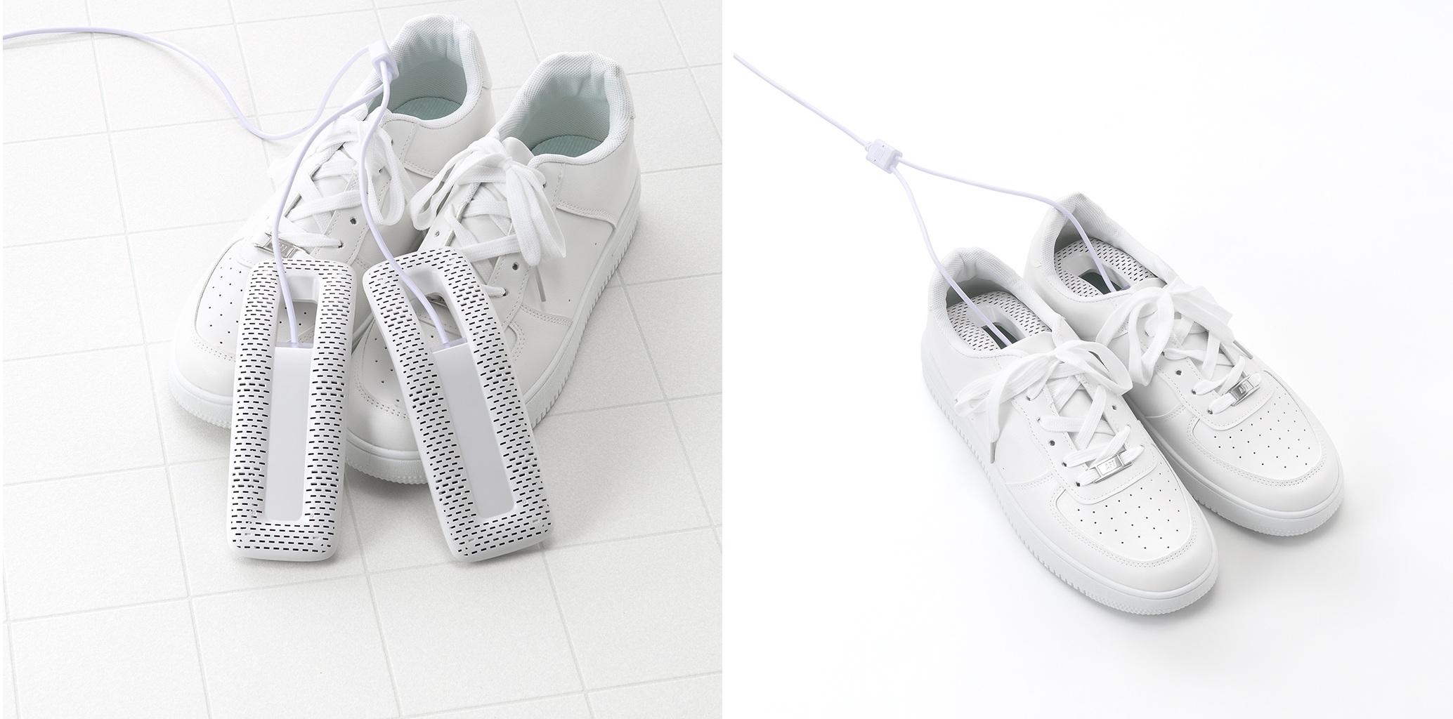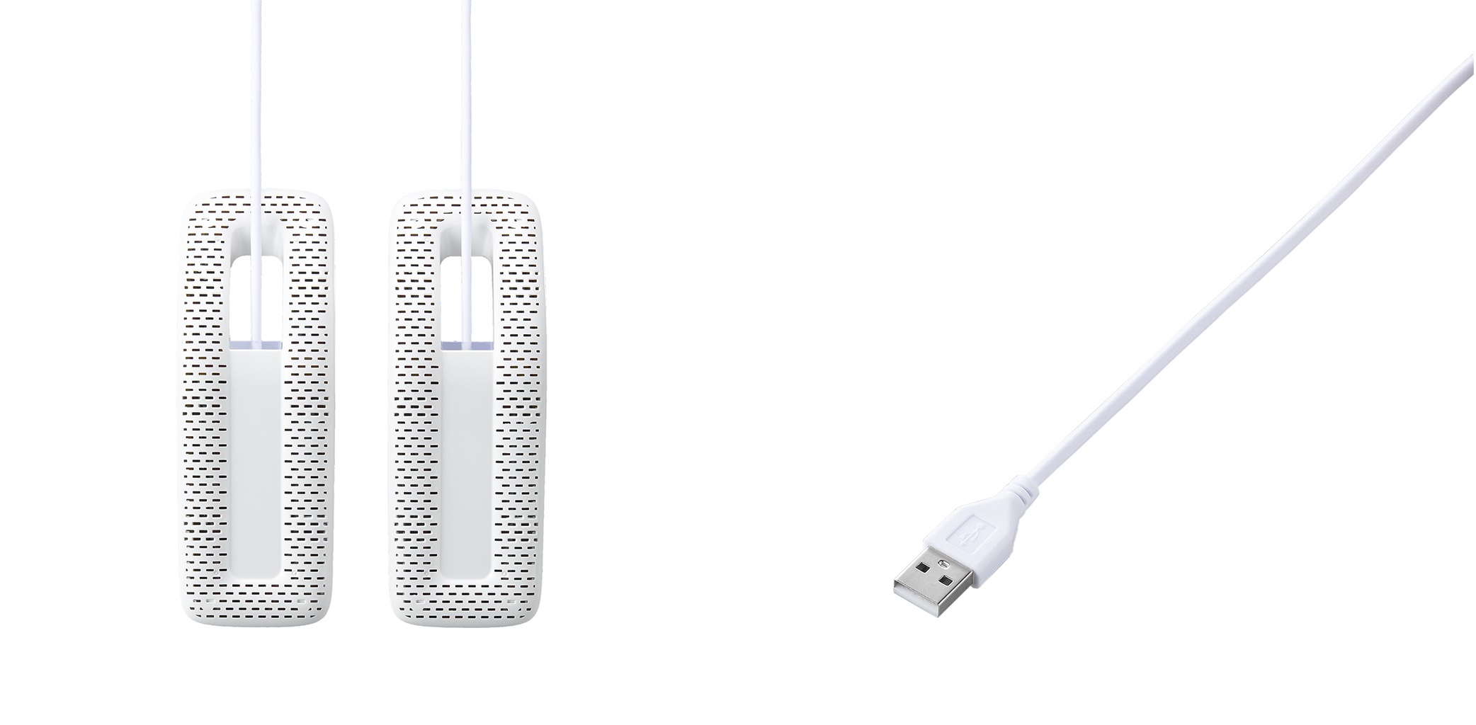 本製品は、軽量コンパクトなUSB給電式の靴乾燥機。手軽に持ち運べるうえ、モバイルバッテリーなどがあればどこでも利用できるので、通勤・通学の際に濡れた靴を、学校・職場で乾燥するときなどにも便利に使うことができる。