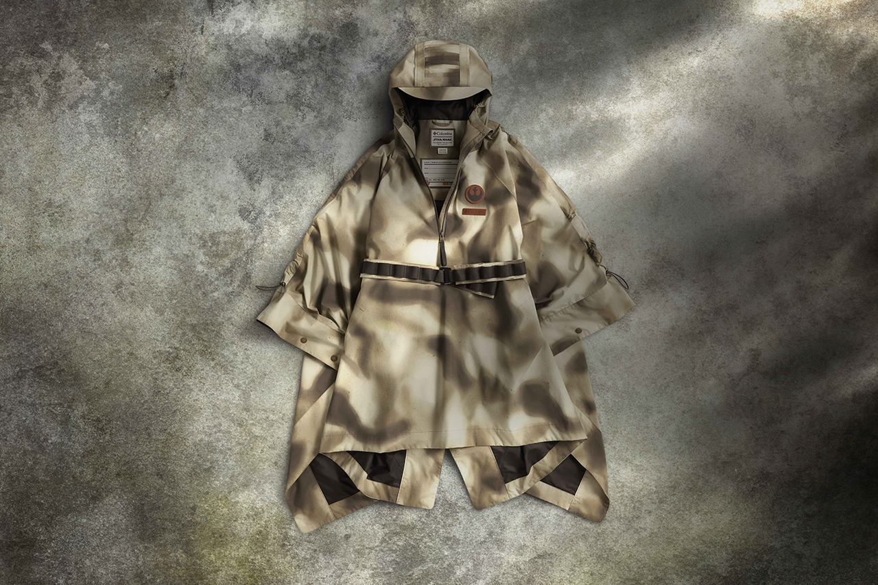 多用途に使えるポンチョは、「エンドア」に降り立った反乱軍の戦士たちに着想を得ており、ハイキングからスピーダー・バイクまで、どんな自然界環境にも対応可能な防水透湿テクノロジーと本格的なディテールが取り入れられている。