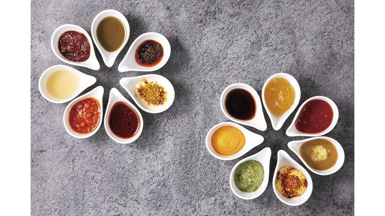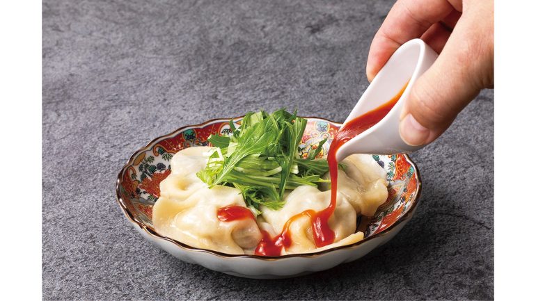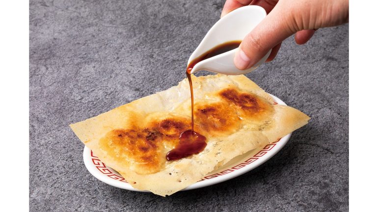 焼き餃子、水餃子ともに、餃子1品注文につき14種類から好きなたれを選ぶスタイル。鉄ラー油の入った大阪王将の定番『元祖たれ』、『チーズソース』や『出汁ジュレ』などの他、『シャキシャキわさび』や『ジンジャーセサミ』などインバウンド客に評判になりそうな和風ユニークたれなど、餃子とたれの組み合わせは128通りにもなるという。