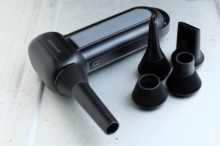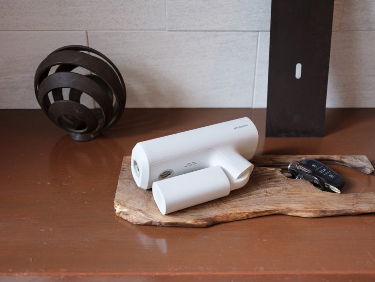 いずれも昨今Amazon界隈では話題の小型家電ジャンルですが、スパイサーのどこに興味を持ったかというと、まずはスパイサーブランドを運営するサイン・ハウスがもともとオートバイの通信機器用品メーカーであり、洗浄を含むバイク用品の開発・販売についてのノウハウをもつこと。ふたつ目に、置きっぱなし、出しっぱなしでも許せそうなシックなモノトーンデザインであることです。