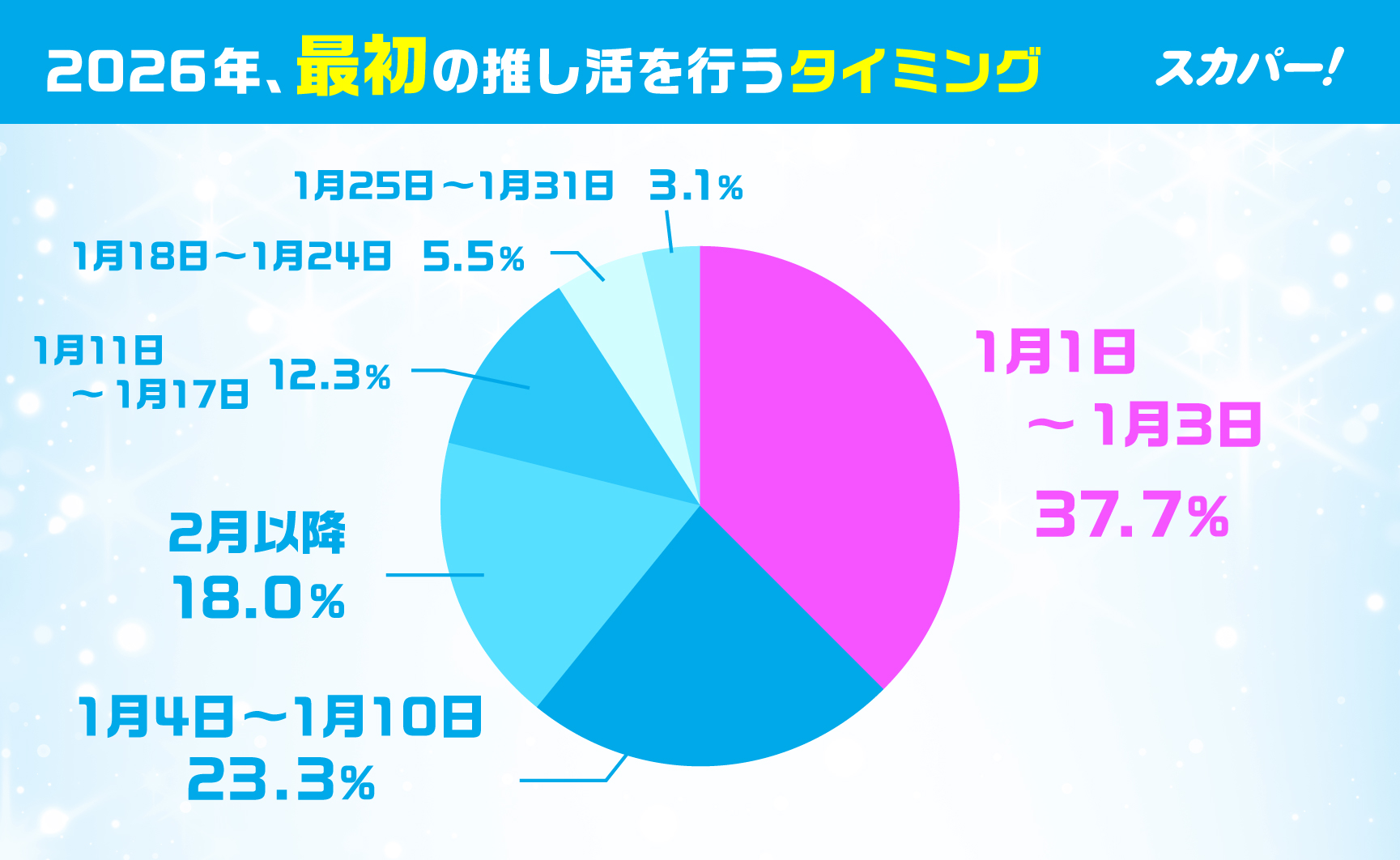 この長期休暇の中で、活動が最も活発になる時期を調べると、「推し納め」のピークは「12月29日~31日」(33.3%)、「推し始め」のピークは「1月1日~3日」(37.7%)となった。