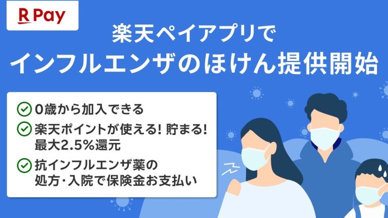 楽天ペイメントと楽天少額短期保険は、キャッシュレス決済サービス「楽天ペイ」アプリにおいて、「インフルエンザのほけん」の提供を開始した。
