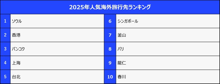 グローバルオンライン旅行サービスプロバイダーTrip.comは、2025年における日本人旅行者の海外旅行先ランキングおよびトレンドを発表した。