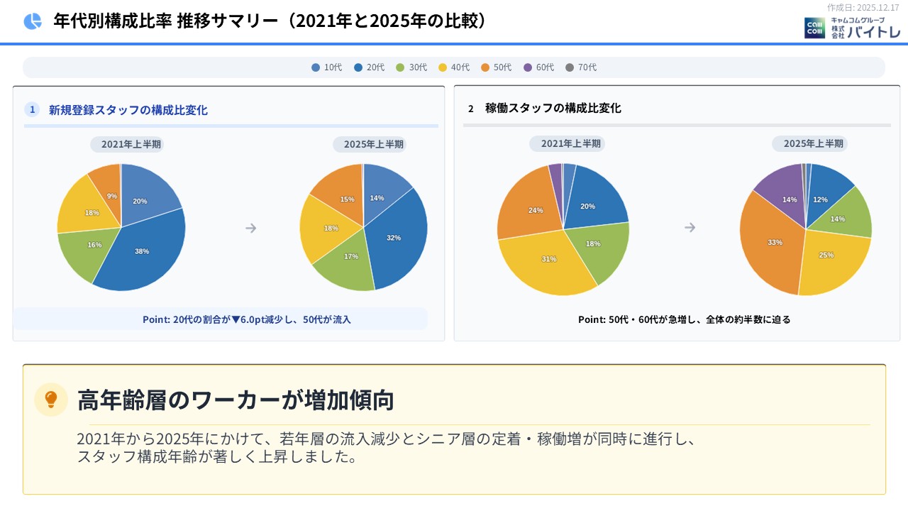 それと、これは面白い変化なのですが、10年くらい前は若年層の方のご登録が圧倒的に多くて、40代以上の方についてはご登録の割合はどちらかというと少なかったのですが、ここ数年は若年層の登録はそれほど減ってはいないのですが、逆に中高年の方のご登録が増えたというデータが観測できています」