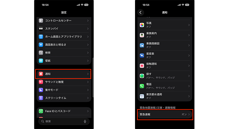 iPhoneを使用していて緊急地震速報の通知が来なかった場合、以下の手順で確認してみて下さい。