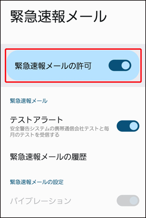 4.「緊急速報メールの許可」をオン(青)/オフ(グレー)する