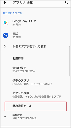 ■3.緊急速報メールの受信設定がオンになっているかを確認する