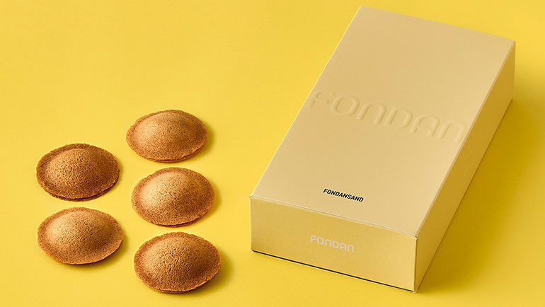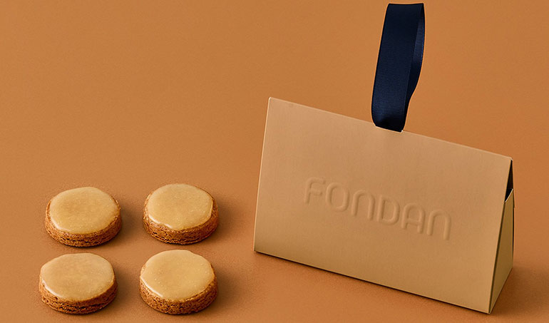 ブランド名の「FONDAN」とは、フランス語のFONDANTに由来する造語。FONDANTには、とろける・なめらかに溶けていくという意味があり、口に入れた瞬間にほどけるような食感と、繊細な生バターの風味を表現して名づけられたという。