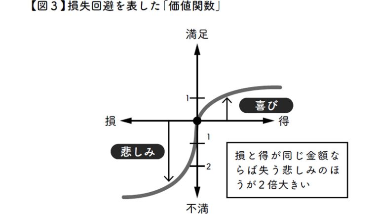 下の図は、ノーベル経済学賞を受賞したダニエル・カーネマンらによる、損失回避を表した「価値関数」のグラフです。