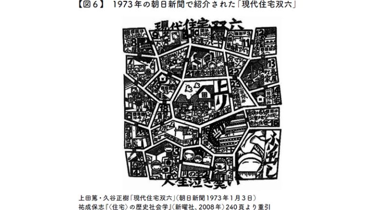 1973年の朝日新聞で紹介された「現代住宅双六」には、人生の変遷とともに住宅がレベルアップしていく、理想の形が表現されています。