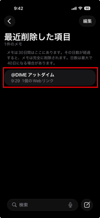 削除したメモは、「最近削除した項目」内に最大30日間保管されます。