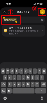 2.名前をつけ、「✓」アイコン(完了)をタップすると新しいフォルダが作成できます。