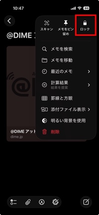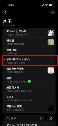 5.メモの一覧にも、ロックがかかっているのがわかるように表示されます。