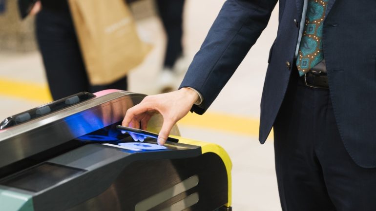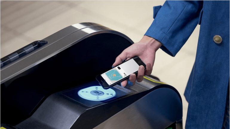2.iPhone上部やApple Watchのディスプレイを改札機の読み取り部分にかざすと、改札の出入りが可能。